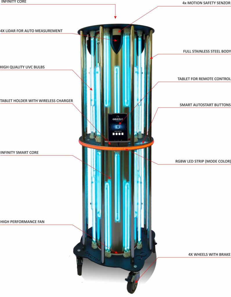 SPECTRA infinity is uitgerust met veiligheidssensoren die de externe UVC-buizen uitschakelen in geval van bewegingsdetectie.